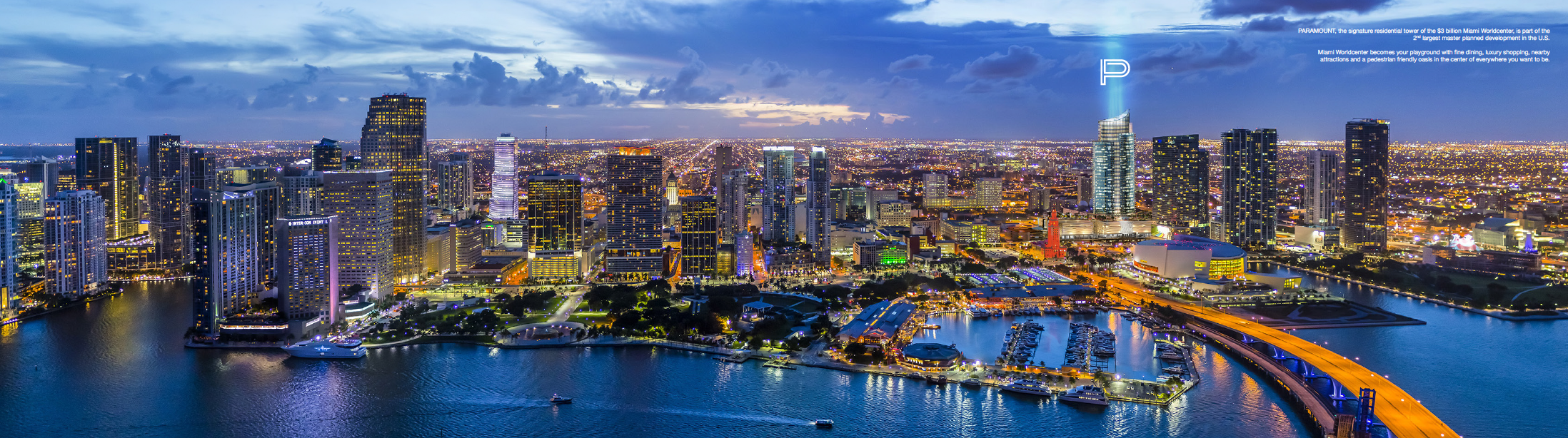 Project highlight: Miami Cities’ Newest Hotspot; 2nd Largest Development in the U.S.; 30 acres surrounded by over US$3 billion of new public and private projects, including: mass transit, museums, shopping, parks, sports venues, entertainment, 365,000 sq. ft. of convention space; A SIGNATURE RESIDENTIAL TOWER: Exclusive location and right to create the premiere luxury residential experience at Paramount Miami Worldcenter.
